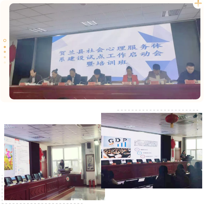 2019年10月30日,贺兰县社会心理服务体系建设试点工作启动会暨培训班,在贺兰县中医医院举行,培训班上,银川市卫生健康委员会公共卫生科张淑兰科长就银川市社会心理服务体系建设试点方案进行解读,银川市心理咨询师协会会长李森阳从专业角度解读银川市社会心理服务体系方案及社会心理服务体系运行机制。