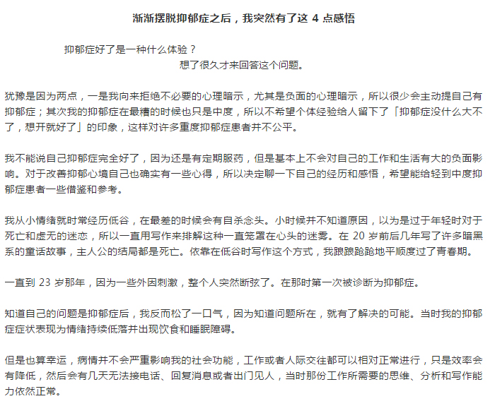 渐渐摆脱抑郁症之后,我突然有了这 4 点感悟